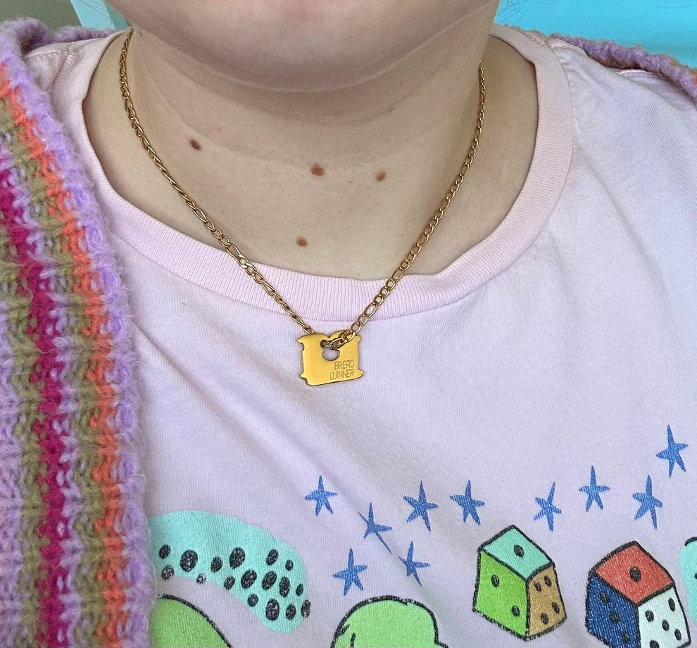 Calling all bread winners! Accessorize with this fun hypoallergenic necklace - perfect alone or layered.