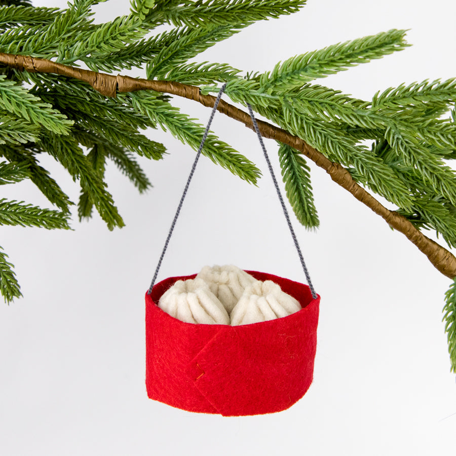 Bring your favorite comfort meal to the holidays with this felt dim sum ornament. It can decorate your tree and anywhere else in your home for the rest of the year! Handmade using natural fibers and eco-friendly resources.