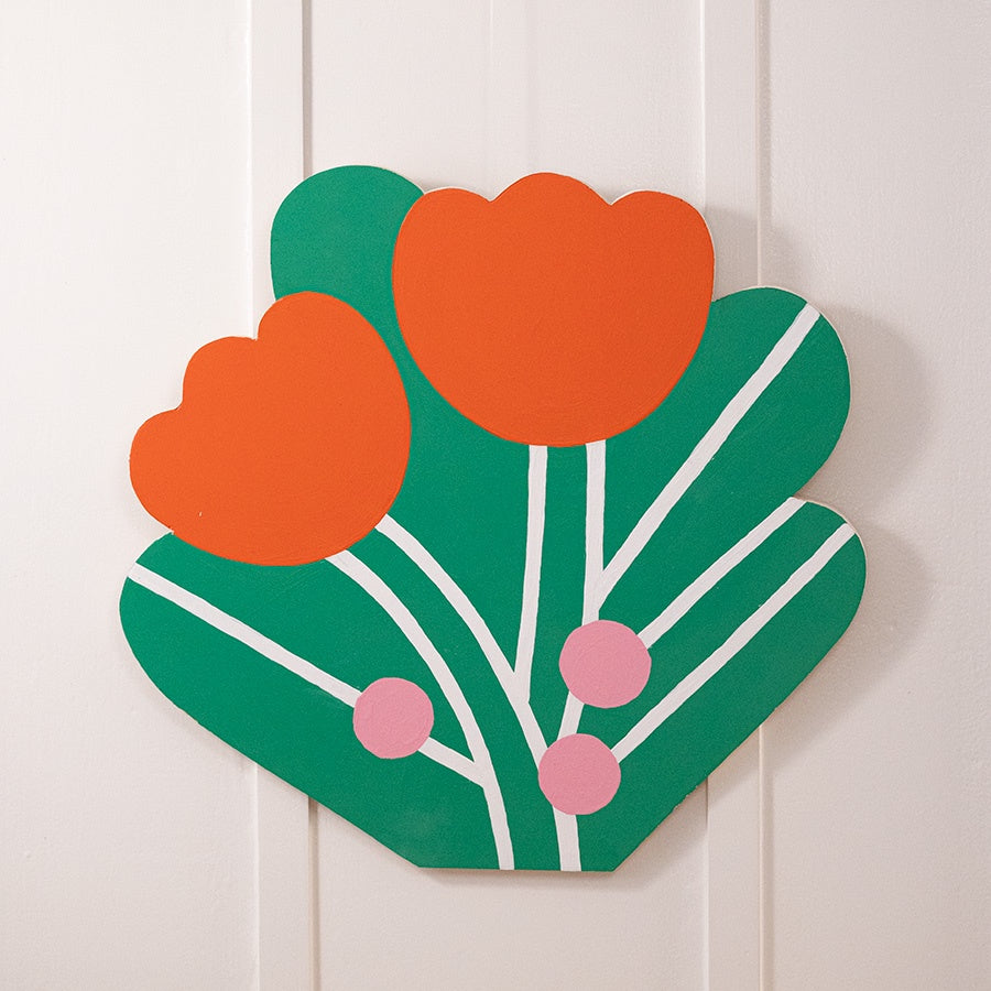 A lively depiction of a bush in full bloom. Painting on plywood.