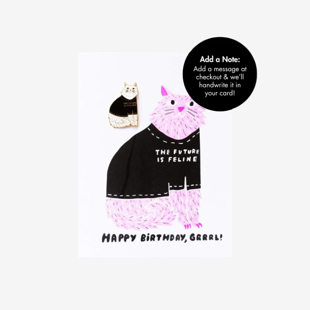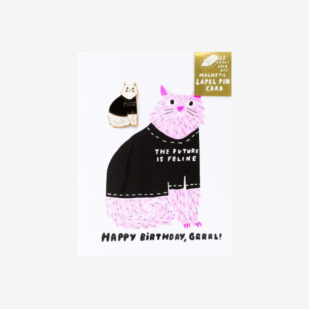 Future is Feline Birthday Lapel Pin Card