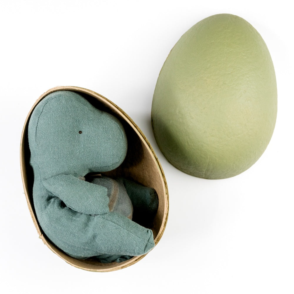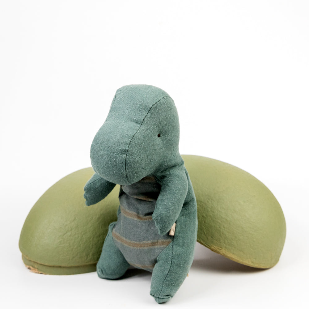 Meet your little one's new favorite friend, Ganto! This friendly dino couldn't be more huggable and cuddly. It has beads in the bottom, so it's even more lifelike and can sit on its own. Gantos fit perfectly inside of their eggs and have an elastic band that fits around to keep them safe inside of their home. Made of cotton and linen.