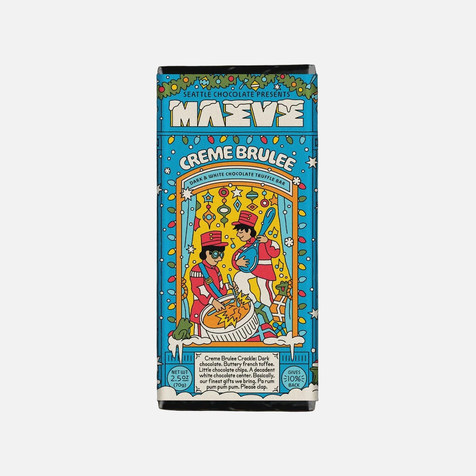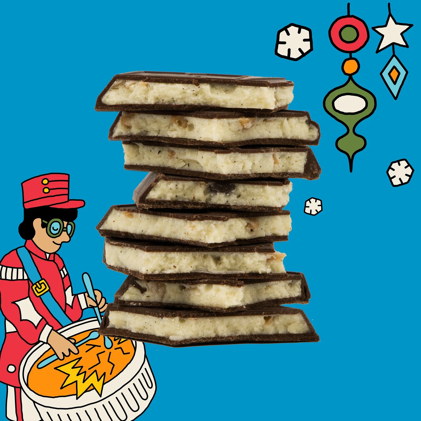 Inspired by the French classic dessert, this crowd pleaser is back with its dark chocolate shell, buttery french toffee, and little chocolate chips in a creamy white chocolate center. Gluten-free, kosher, and non-GMO. 2.5 oz