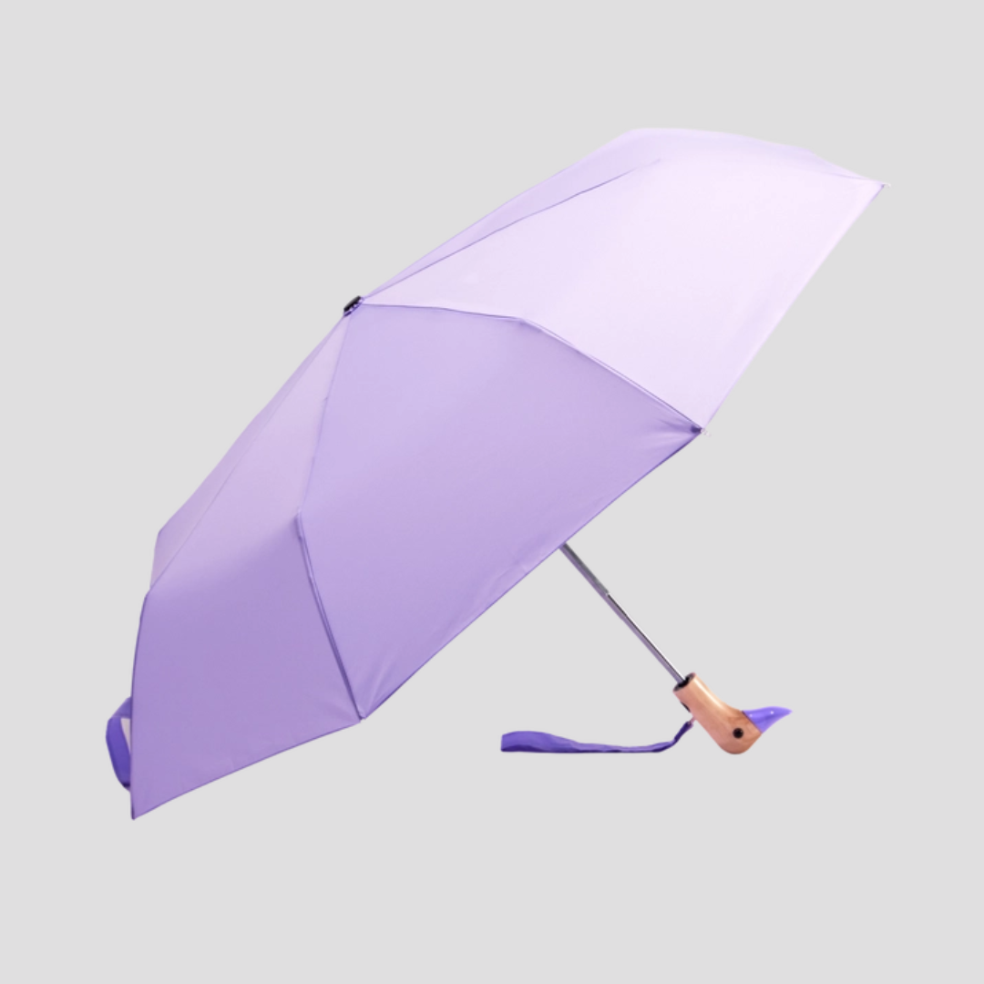 Stay dry in style with this cute and compact duckhead umbrella! You'll stand out from the crowd and spark joy in everyone who encounters this fun little umbrella. Handmade using age old techniques adapted to modern-day usage, these are built to last beyond the season - a functional accessory to be cherished for years. 100% recycled PET fabric made from recycled plastic bottles, solid wood handle made from sustainably sourced birch wood, and high strength steel and aluminum frame.