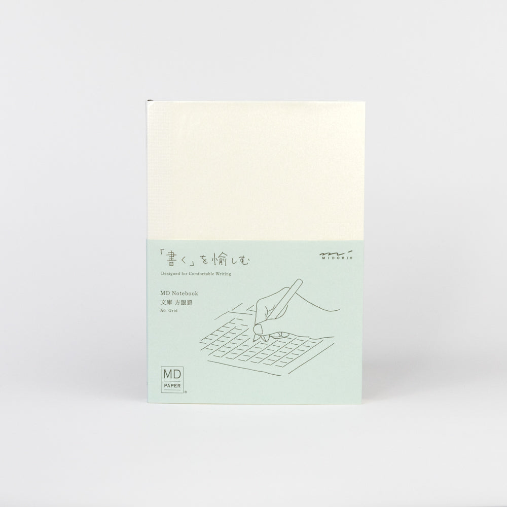 This minimal white Japanese notebook uses Midori’s tried and tested paper, fountain pen-friendly and with minimal ink bleed. With a thread-stitch binding, the notebook easily lies flat when open. A translucent fabric tape covers the spine binding, allowing for visible craftsmanship. It comes with a ribbon marker for keeping your place. Made in Japan.