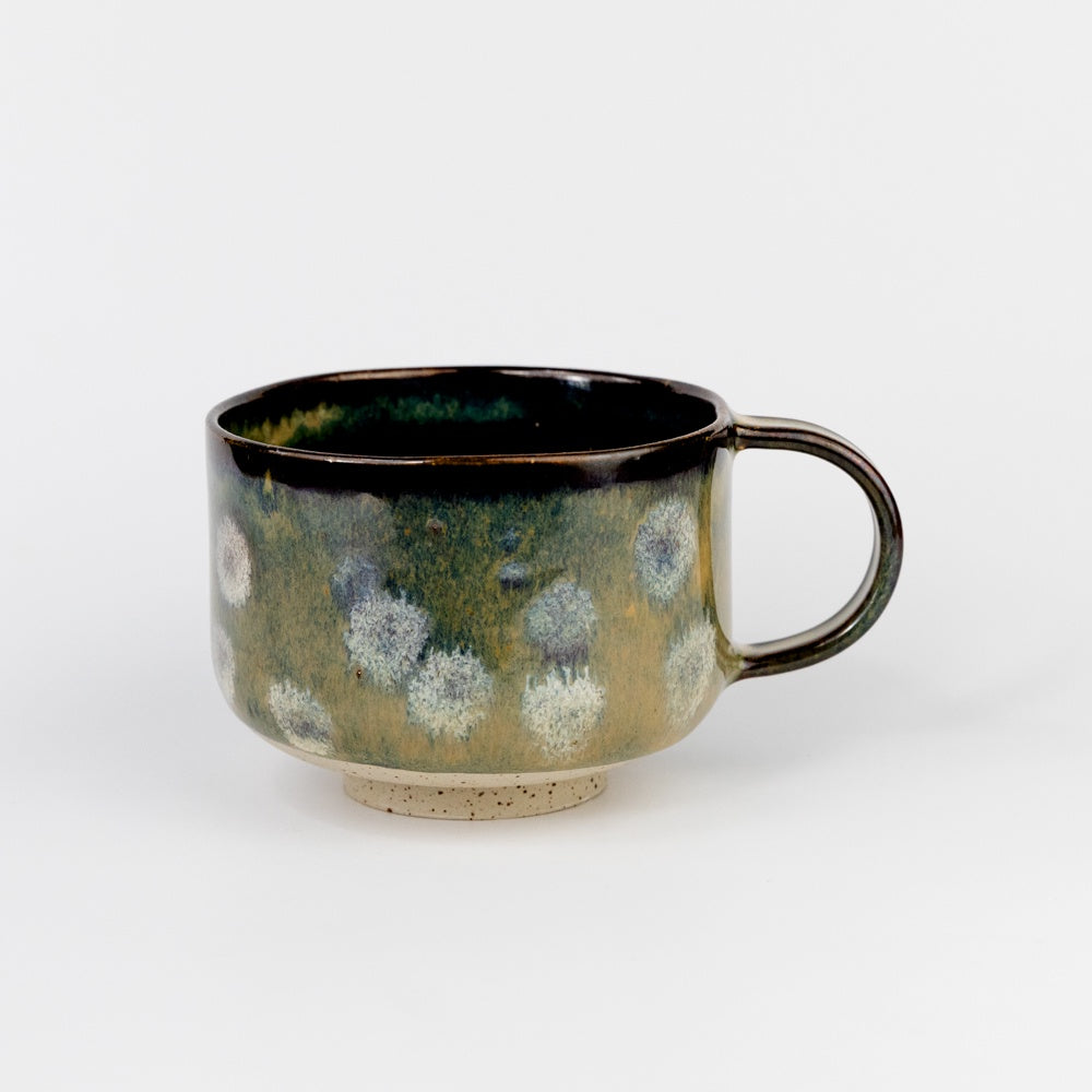 The Mion Mug is a hand thrown stoneware mug (with handle) with a rustic charm all its own. Each item is 100% hand made so items may differ slightly. Holds approximately 450ml or 15.2 fl oz. Dishwasher safe, but hand washing suggested. Dimensions: ~ 8 x 14 cm