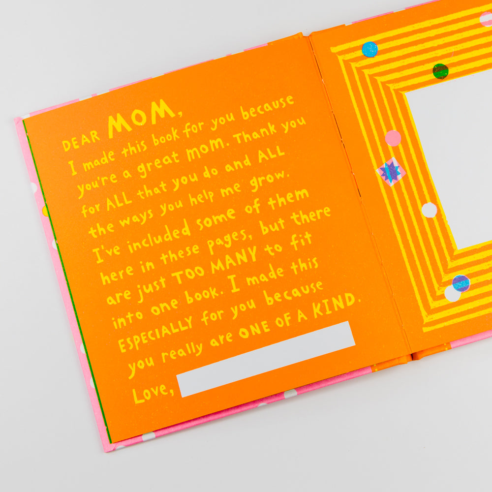 Mom makes every day special! Help a child tell her everything they love about her with the playful prompts in this fill-in-the-blanks book. Kids can open the pages and enjoy an afternoon of imagination - drawing pictures, selecting checkboxes, and making lists - all while celebrating everything they love about their mama. When complete, Mom will have a heartwarming keepsake that captures their little one’s unique personality and big love. The prompts are perfect for little ones ages 7 and up. Hardcover, 32 pages.