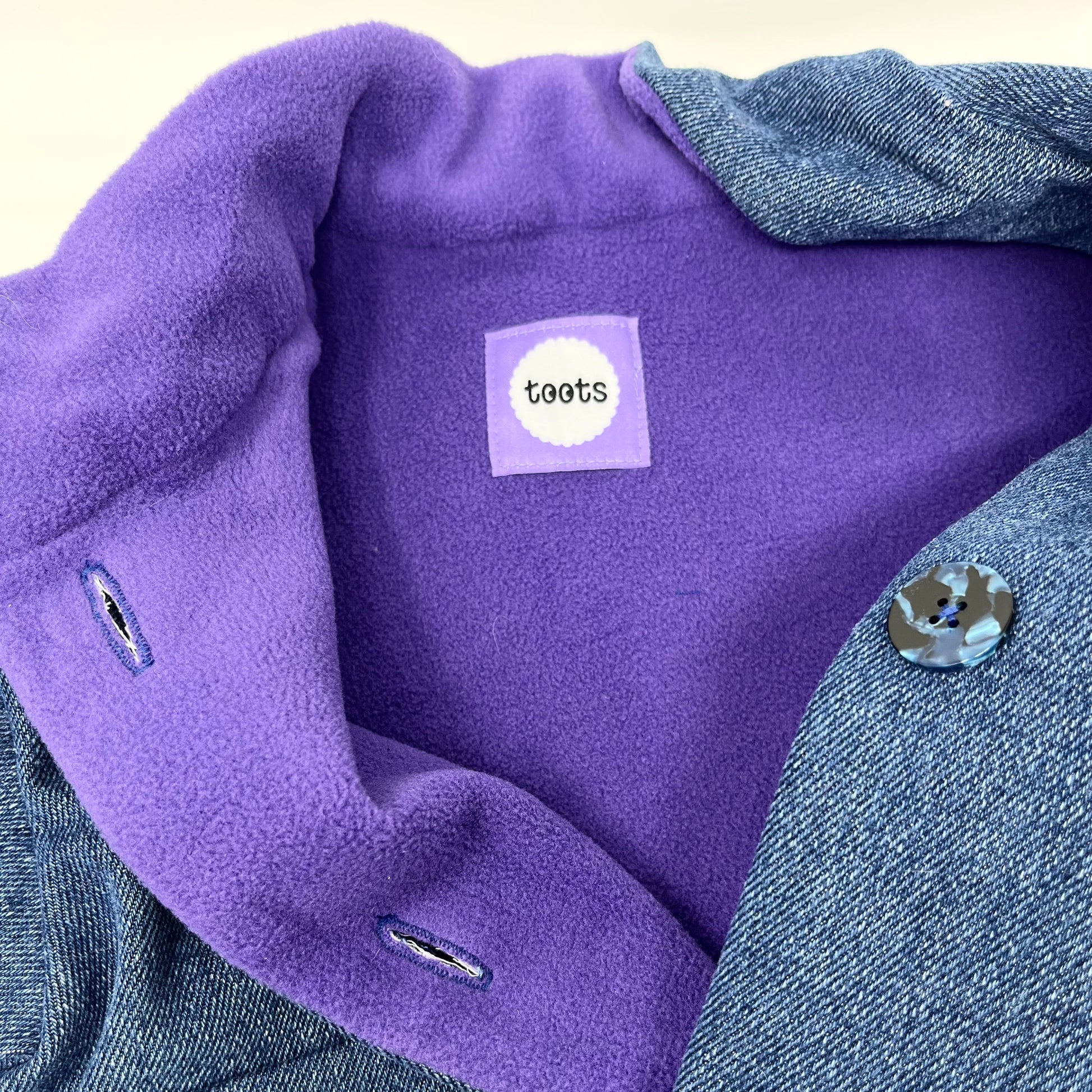 The outside is made from a sturdy woven with a cozy lining of Fleece or Cotton. Each one is features a stand collar, large patch pocket and either resin buttons or snaps.