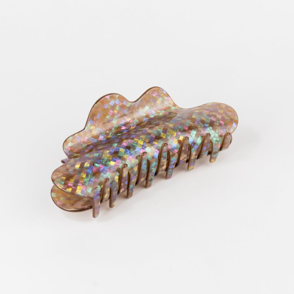 This large hair claw works like a dream on all hair types and textures. Perfect for medium to longer hair lengths. Made of cellulose acetate with lead and nickel-free hardware. Due to handmade nature, slight variations will appear. Designed by Tiffany Ju. Proudly and responsibly made in China.