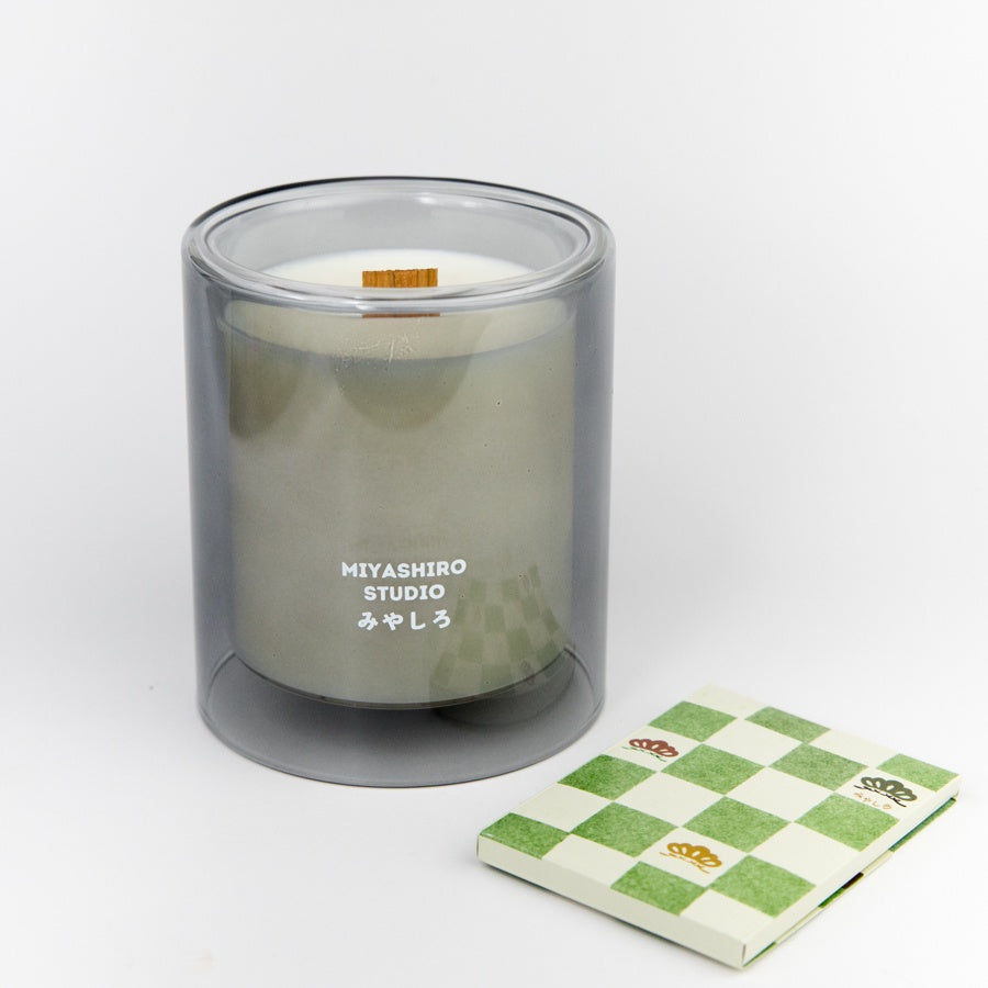 This candle tells a story through scent - Obake (oh-bah-keh) is ghost stories told by lantern light, temple incense lit for our ancestors, messages carried away on the smoke, finding comfort in ritual. Hand-poured soy wax in a double walled borosilicate glass vessel that can be repurposed after. Features a non-crackling wood wick and made with phthalate-free fragrance oils. Comes with a set of black wood matches.