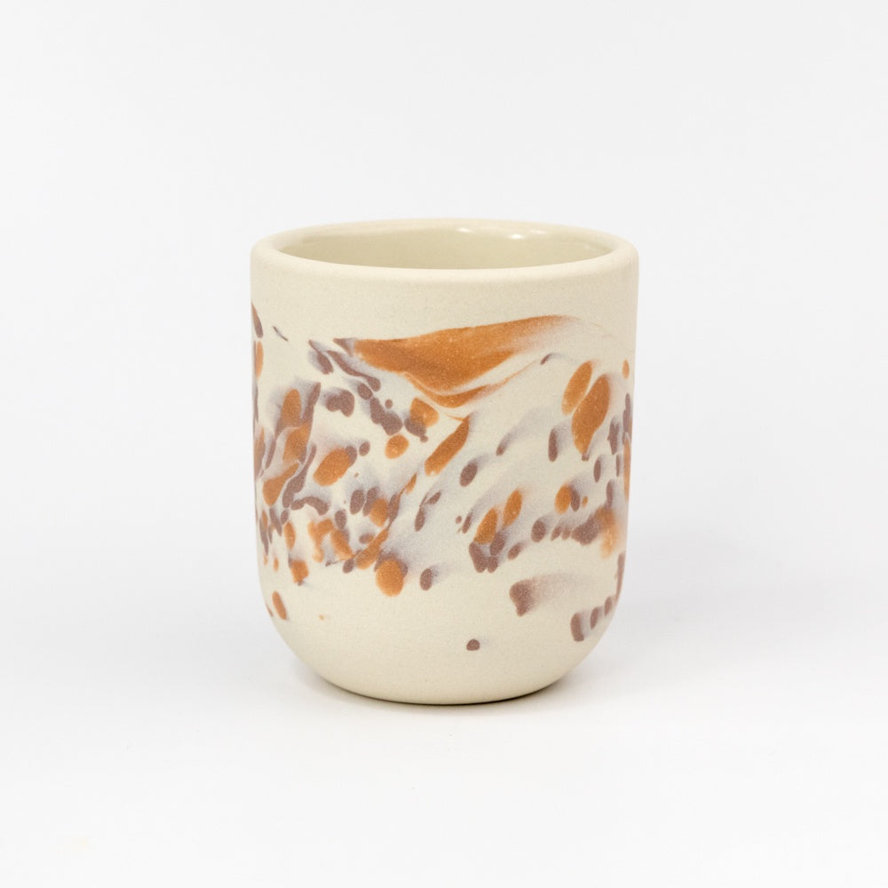 Peaches vessels are high-fired mason stained porcelain and are finished with a clear food safe glazed interior with a raw buffed porcelain exterior. Each vessel is handmade with love in Oregon. Holds 8 oz.