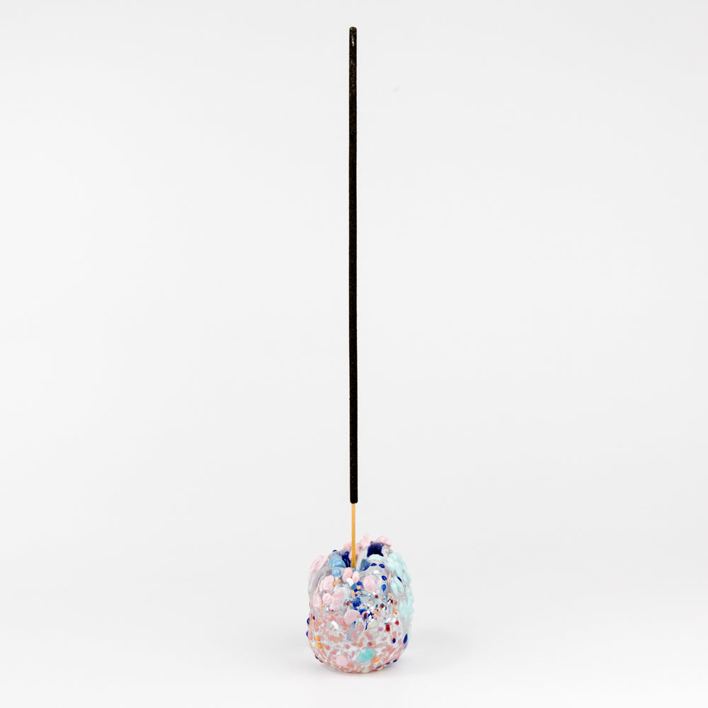 This handmade Pebble incense holder is a pleasure to look at whether you have incense burning or not. The heavy glass with decorative elements is perfect for those longer incense sticks. The small size allows you to easily store it away if you don't need it out at all times. Each Pebble is handmade and varies in size and shape, no two are exactly alike! These are made of clean glass containing no lead, not actual "crystal glass".