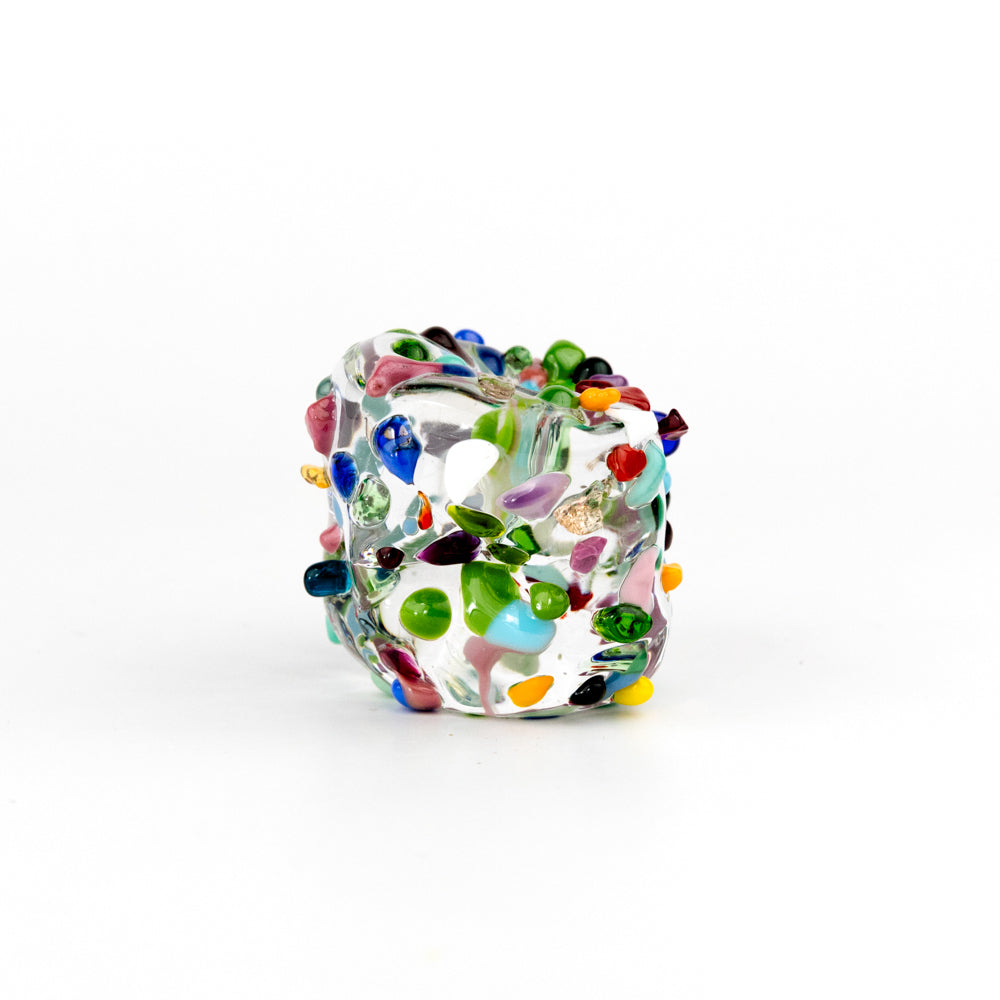 This handmade Pebble incense holder is a pleasure to look at whether you have incense burning or not. The heavy glass with decorative elements is perfect for those longer incense sticks. The small size allows you to easily store it away if you don't need it out at all times. Each Pebble is handmade and varies in size and shape, no two are exactly alike! These are made of clean glass containing no lead, not actual "crystal glass".