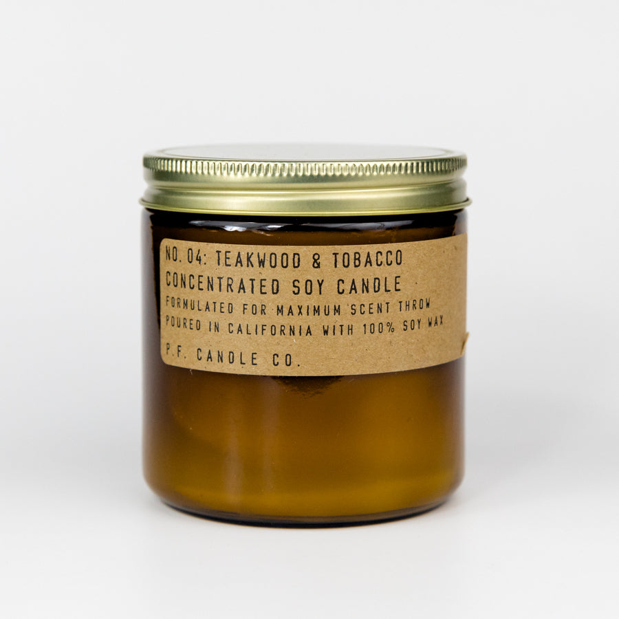 Teakwood & Tobacco: Bold and complex, this scent starts out musky and a little bit sexy with lead notes of leather, pepper, and tobacco. A base of teak and sandalwood with a hint of orange and patchouli make this best selling fragrance popular with men and women. Teakwood & Tobacco is one of PF Candles best sellers, known as the "OG" scent that put them on the map! Many even call this the Boyfriend scent.Leather, teak, and orange