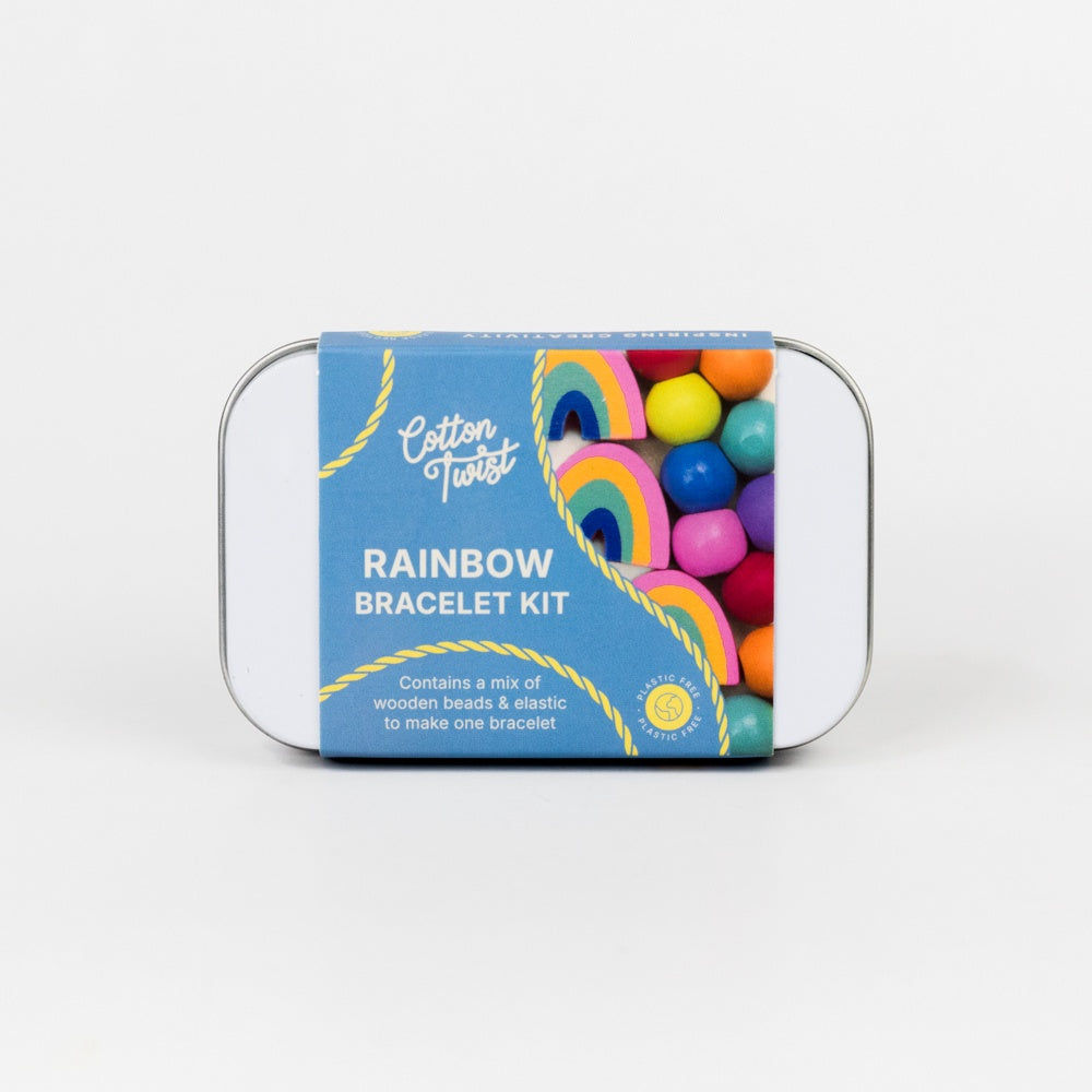 With this beautiful gift tin containing elastic and beads, little ones can create a rainbow bracelet. The elastic comes with metal ends to aid the beading process for young children. The tin can be used to store the bracelet, or a special trinket! Kit includes a hinged tin, wooden rainbow beads, spherical beads, and elastic with metal ends to aid beading. Recommended for ages 3+
