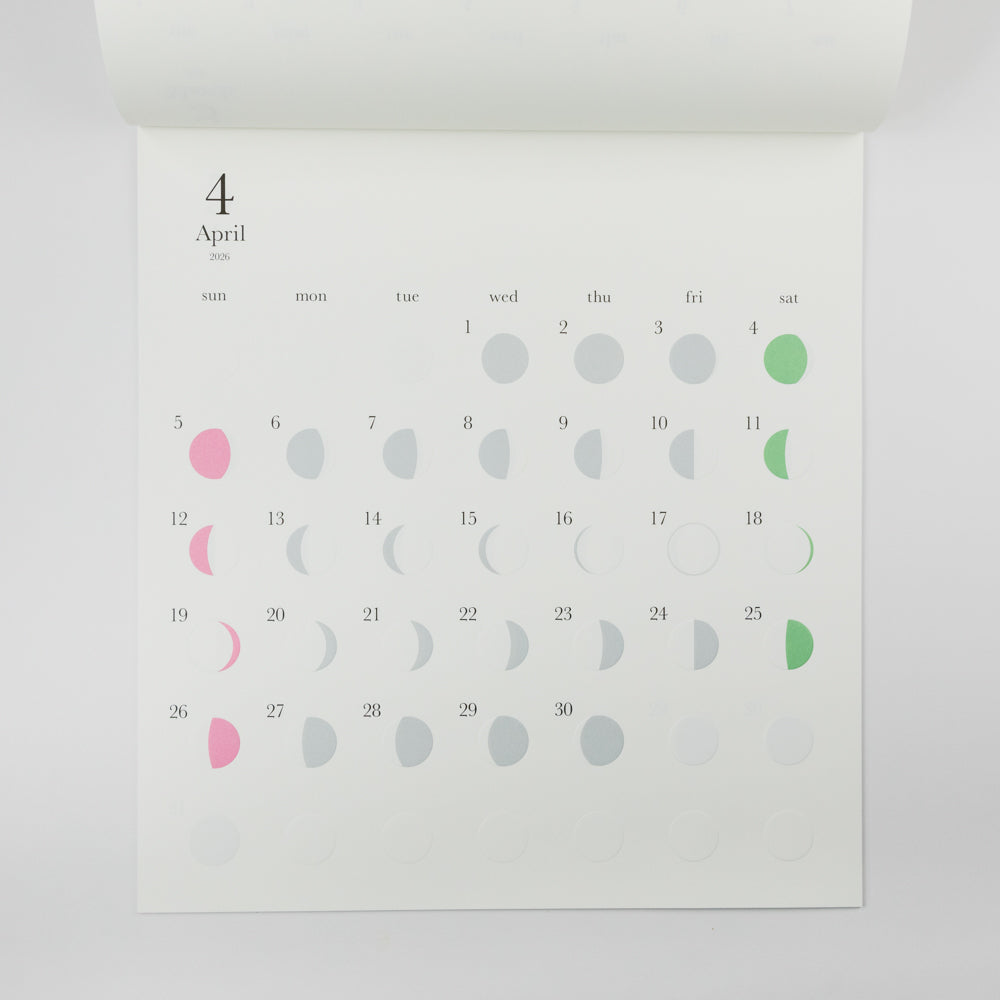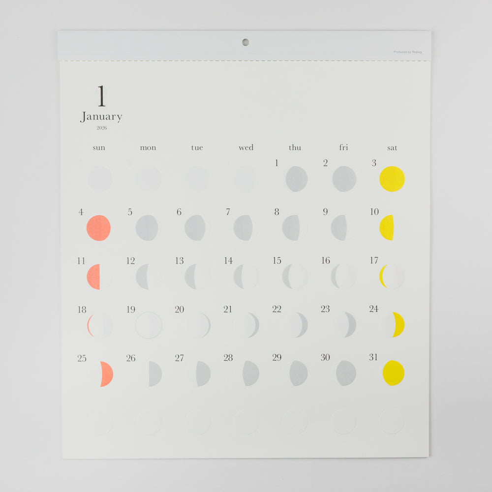 This wall calendar shows you phases of the moon! Representing the silhouette of the moon by embossing on high quality, thick texture paper, this calendar uses seasonal colors with beautiful color patterns that provide a fresh feel each month. Each month's page is perforated for easy tearing off at the end of the month.