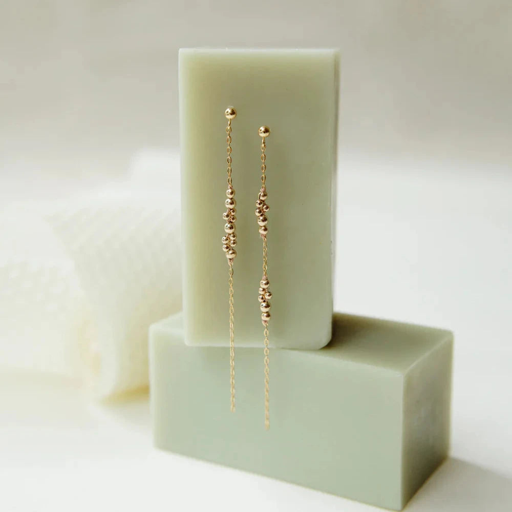 Part of the Abacus Row signature collection, these beautiful post earrings feature an asymmetrical beaded pattern linked to a 14k gold-filled chain.