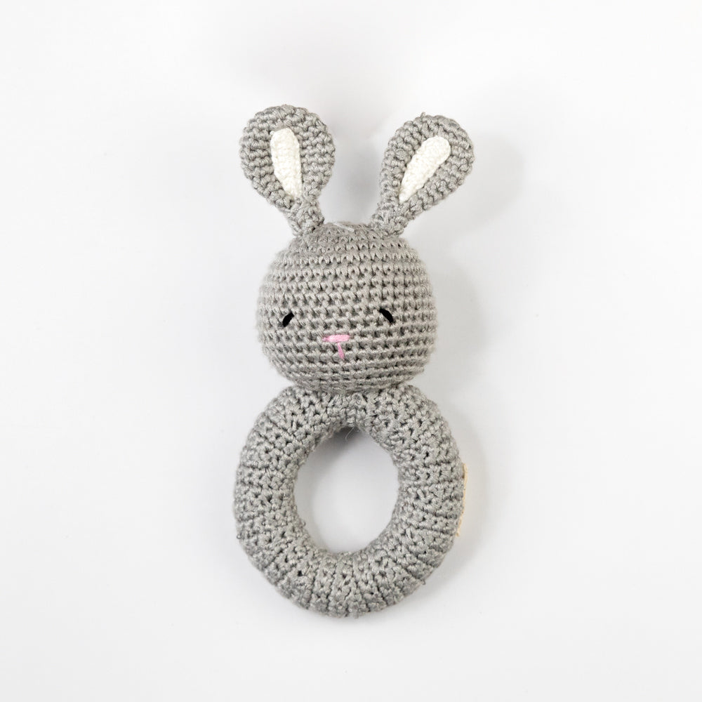 This soft and sweet little bunny is an easy-to-grasp ring rattle. It was lovingly hand-crocheted using soft 100% organically grown and sustainably harvested bamboo. Bamboo yarn is soft, naturally antibacterial, and non-allergic. Perfect for babies! Designed in San Francisco, USA and hand-crocheted by a team of artisan women in China (mostly mothers and farmers working to provide their family with extra income for basic needs.) Non-toxic and tested at the highest standards for safety.