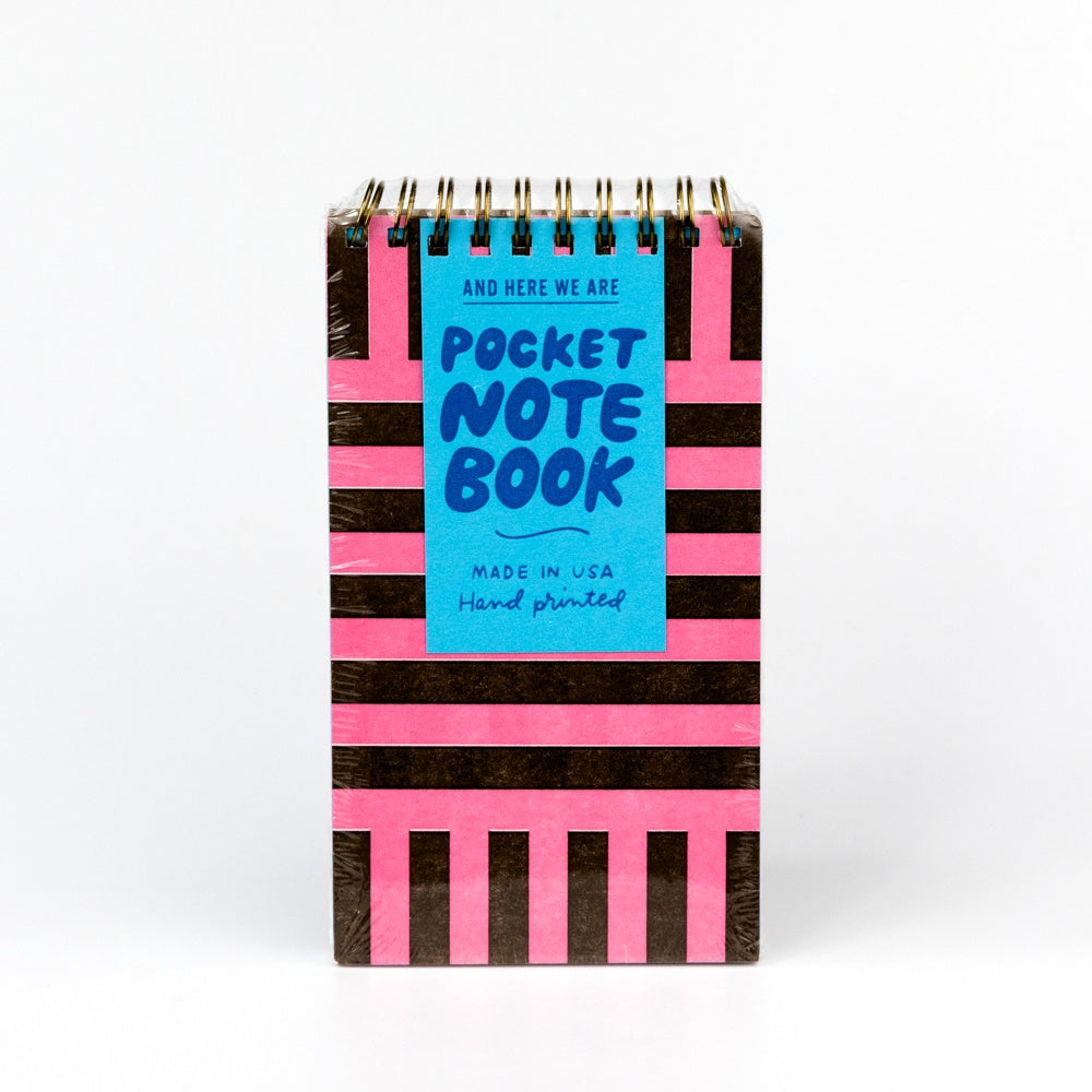 Block stripes are having a moment! This little notebook in pink and brown stripes is a color combo made in heaven. Perfect to hold your notes, lists, plans, dreams, ideas, recipes, spells, sketches, doodles, and secrets. Features 60 lined pages. Hand printed in Columbus, OH, with artwork by Meghan Hopkins Sokorai.