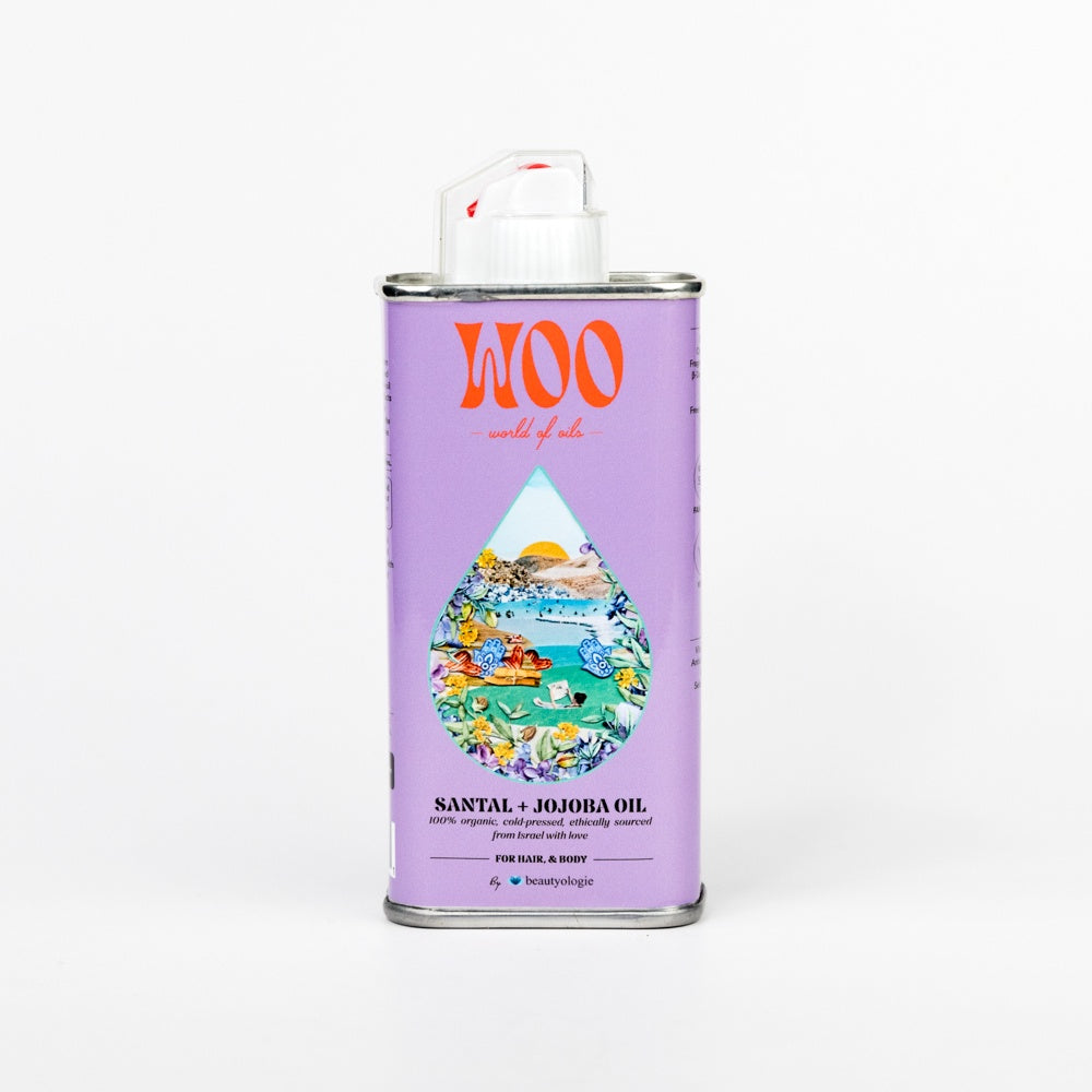WOO Santal + Jojoba Oil is a fast-absorbing, lightweight oil that delivers deep hydration and nourishment to hair, skin, and nails - without the greasy residue. Infused with fresh top notes of ozone, violet iris and balsam, and grounded by rich sandalwood, leather, and amber, this multipurpose elixir softens and smooths while leaving behind a subtle, intoxicating scent. Whether you’re sealing in moisture post-shower, smoothing flyaways, or reviving tired skin, this multipurpose oil brings balance, glow, and a little indulgence to your daily ritual. Perfect for all skin types, providing a wide range of benefits.