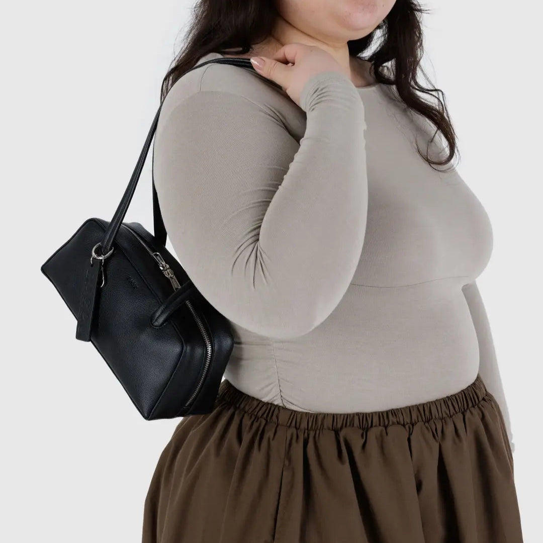 This small recycled leather bowler bag is designed to be accessorized, with four charm loops and a clip ring. Features a 13" strap drop and includes an interior zip pocket that keeps things secure and in reach, an internal key leash, and a debossed keychain with ring and clip. Fits your phone, wallet, keys, and more! Made of 70% recycled leather fibers, 9% recycled polyester, 21% water-based polyurethane, with 100% recycled nylon lining. Recycled leather certified by Global Recycled Standard (GRS), an organization dedicated to verifying recycled content & responsible production practices. Recycled leather material suppliers certified by SMETA Social Compliance, the leading audit for responsible supply chain practices.