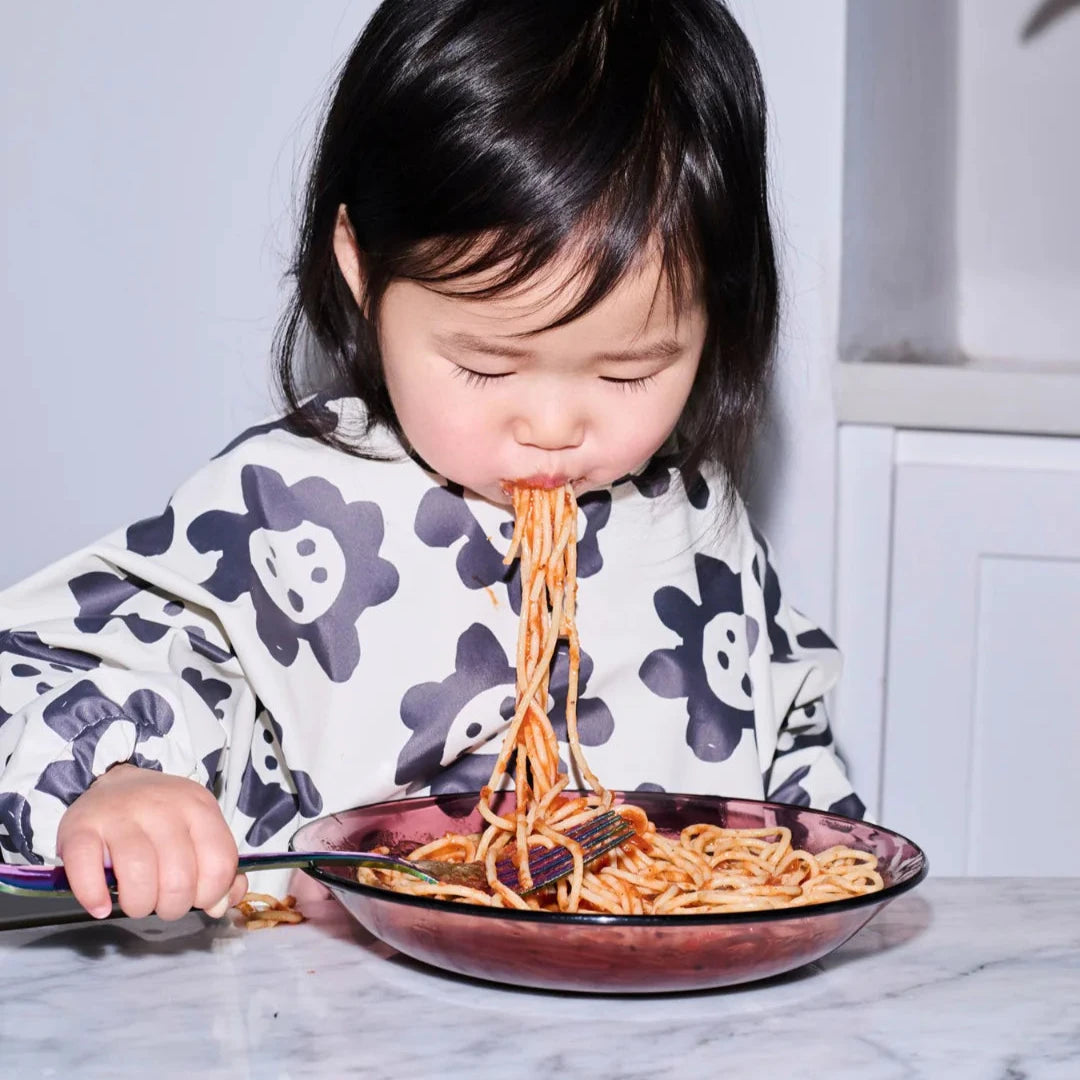 This long sleeve smock bib is perfect for messy eaters and arts-and-crafts enthusiasts. For ages 6 months to 3 years, these waterproof outfit-savers are made of Oeko-tex certified fabricc that wipes clean, has a soft feel, and has been safety tested. Longer in the body than most sleeved bibs to allow for more outfit coverage (less laundry!) and to accommodate older toddlers, these make a great gift for growing kids. Made of 100% recycled polyester, Oeko-tex certified.