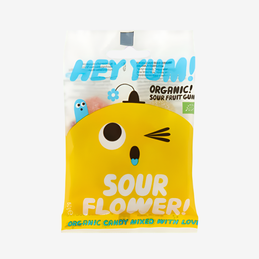A beautiful world of delicious lush gummy flowers and cute rabbits, with a rich taste of fruit sprinkled with sour sugar crystals. Hey Yum! yummilicious organic candies are infused with fruit, enhanced with sugar and honey, and stirred with sweet intentions. Gluten free. Contains gelatin.