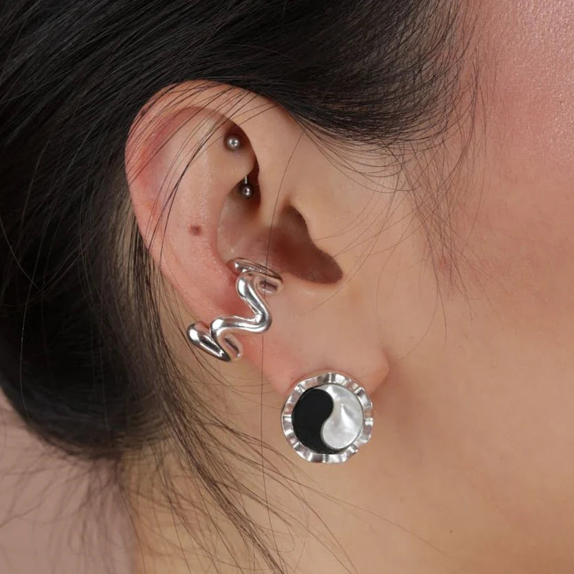 No piercing needed to adorn this fun squiggly ear cuff! It's the best way to get the ear stack of your dreams. Metal pieces are casted and hand fabricated in sterling silver.