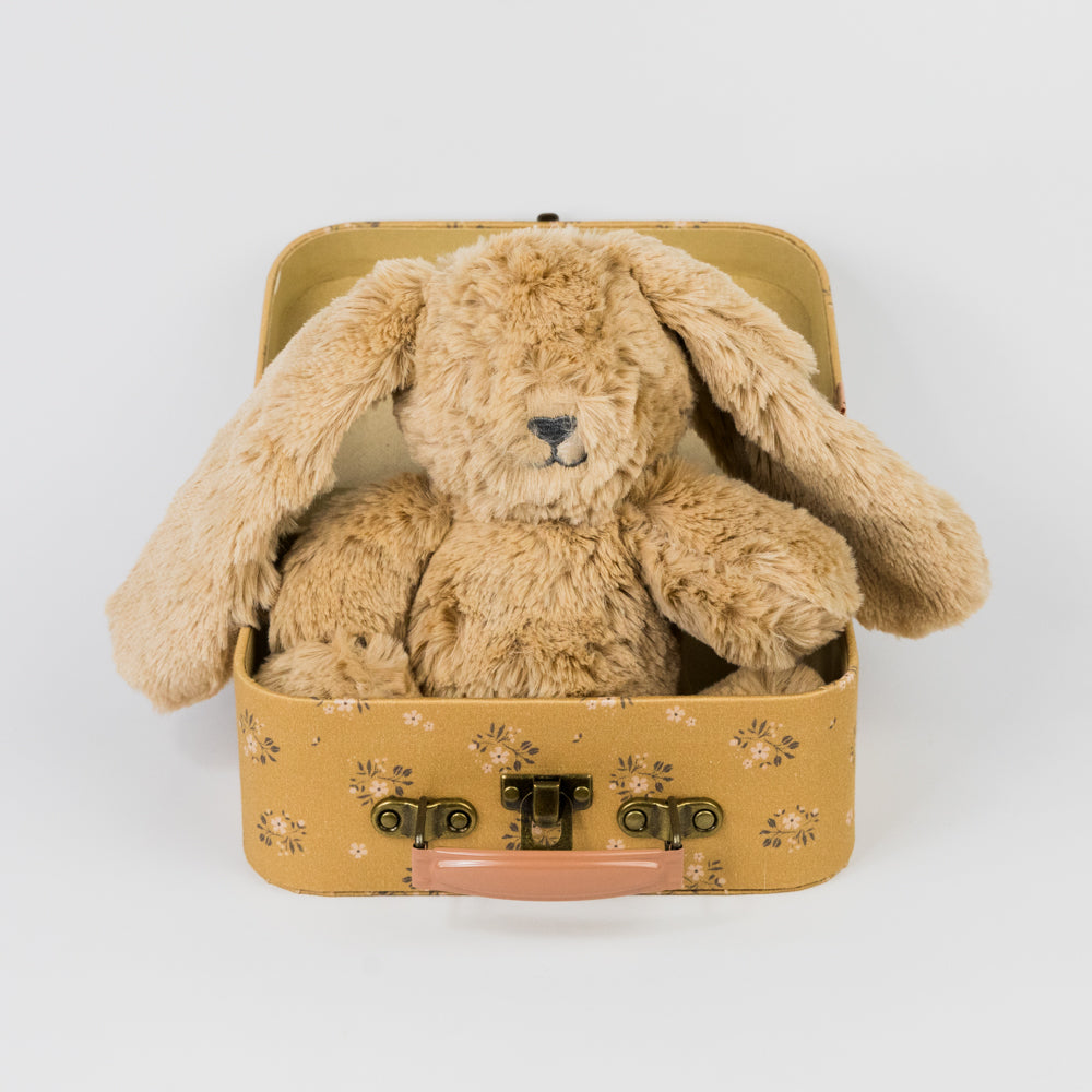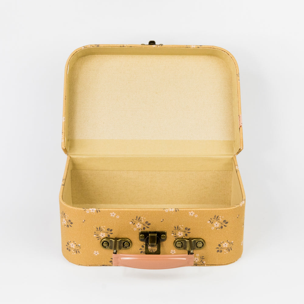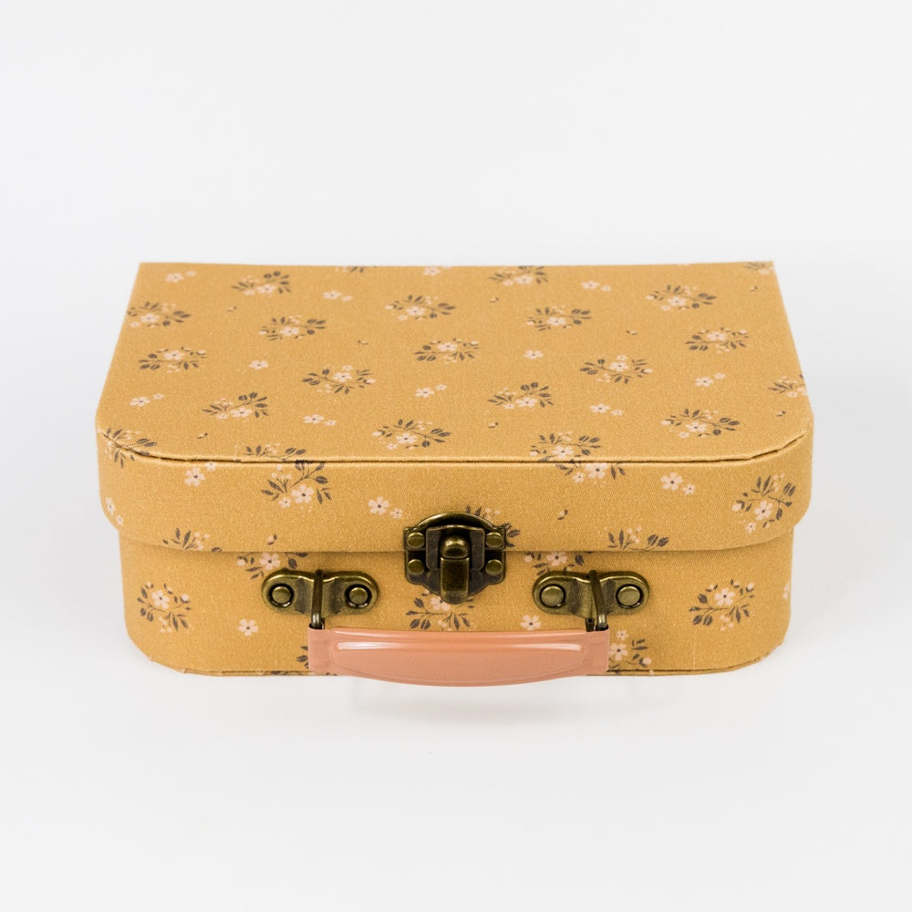 A perfect suitcase to store all your favorite items. Each suitcase is covered by unique Maileg fabrics and has a colored metal handle. This is your portable storage solution for your favorite toys!