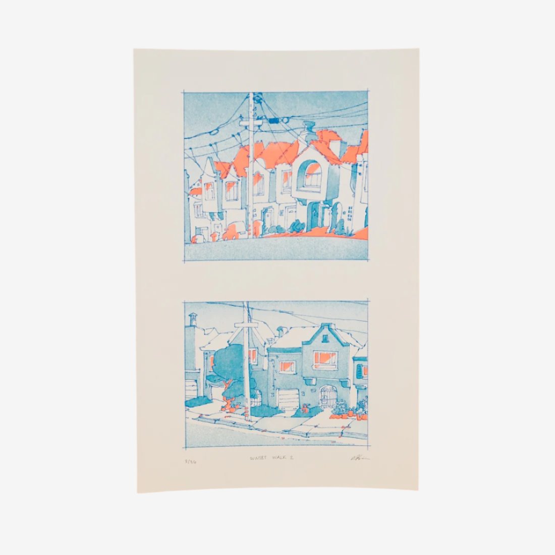 Beautify your space with this risograph art print, made with teal, aqua, and fluorescent orange ink. Hand printed on 80lb Cougar paper in Natural White at Max's Garage Press in Berkeley, CA.