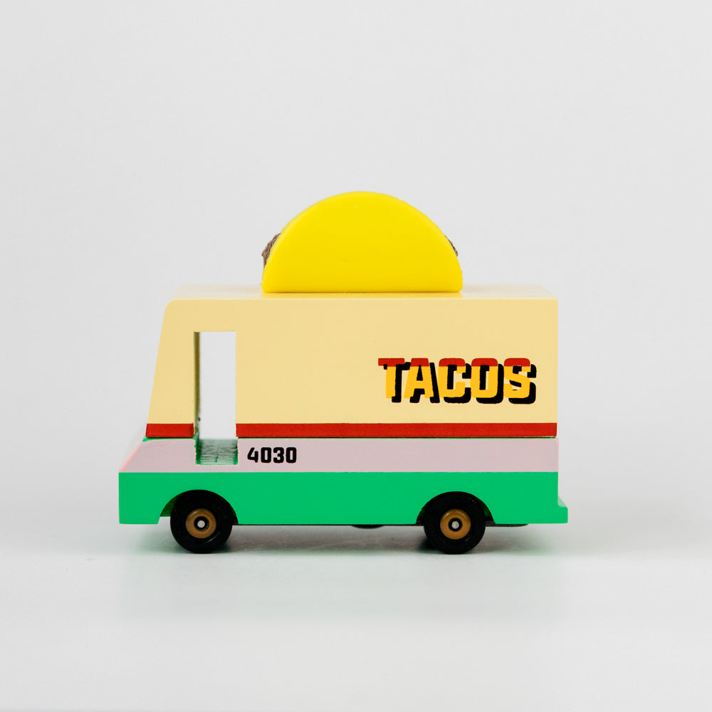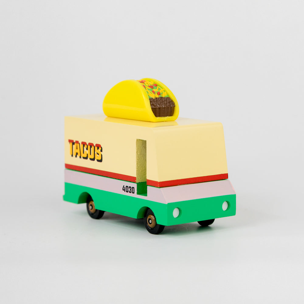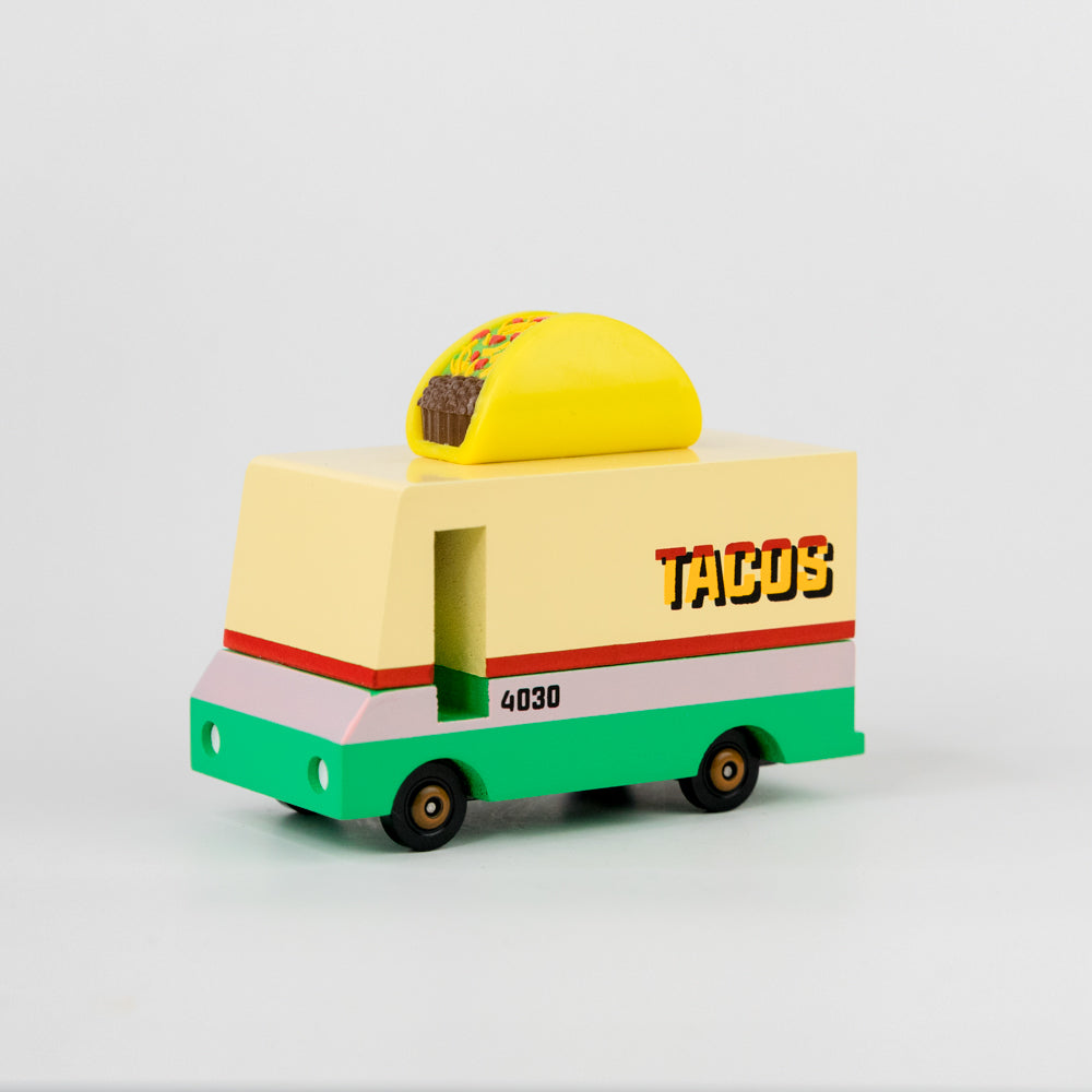 Candylab's taco truck was inspired by the trailblazing spirit of the very first food trucks. Designed with true SoCal vibes in mind, it has fun and fiesty coats of paint, some spanking orange wheels, and a terrific taco up top.