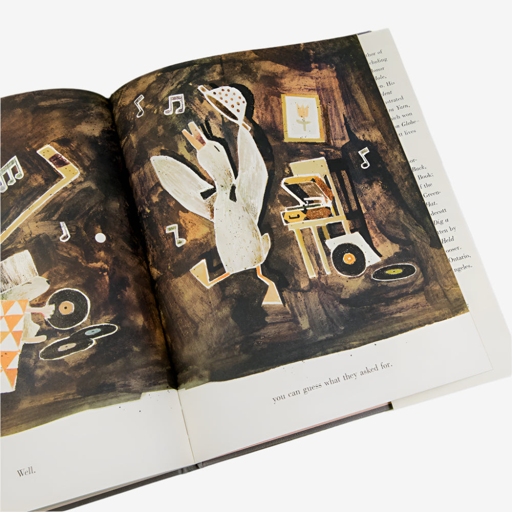 When a woeful mouse is swallowed by a wolf, he quickly learns he is not alone: a duck has already set up digs, and, boy, has that duck got it figured out! Turns out it’s pretty nice in there, with delicious food and elegant table settings, courtesy of the wolf’s unchecked gluttony. And there’s something even better: no more fear of being eaten by a wolf! In fact, life is pretty good, until a hunter shows up... This is a tale of cooperation and creative cuisine that is sure to go down easy. Hardcover, 40 pages.