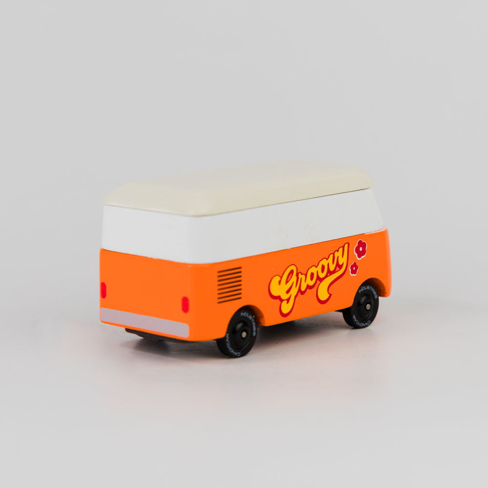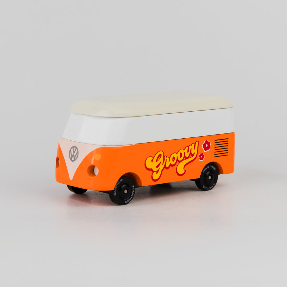 Groovy, dude! A pocket-sized, uniquely cute toy, made of wood and pure nostalgia. Made of solid beech, painted with water-based paints, and fully endorsed by VW®. Bright and orange, and right now on its way to the beach. Catch you later, alligator!