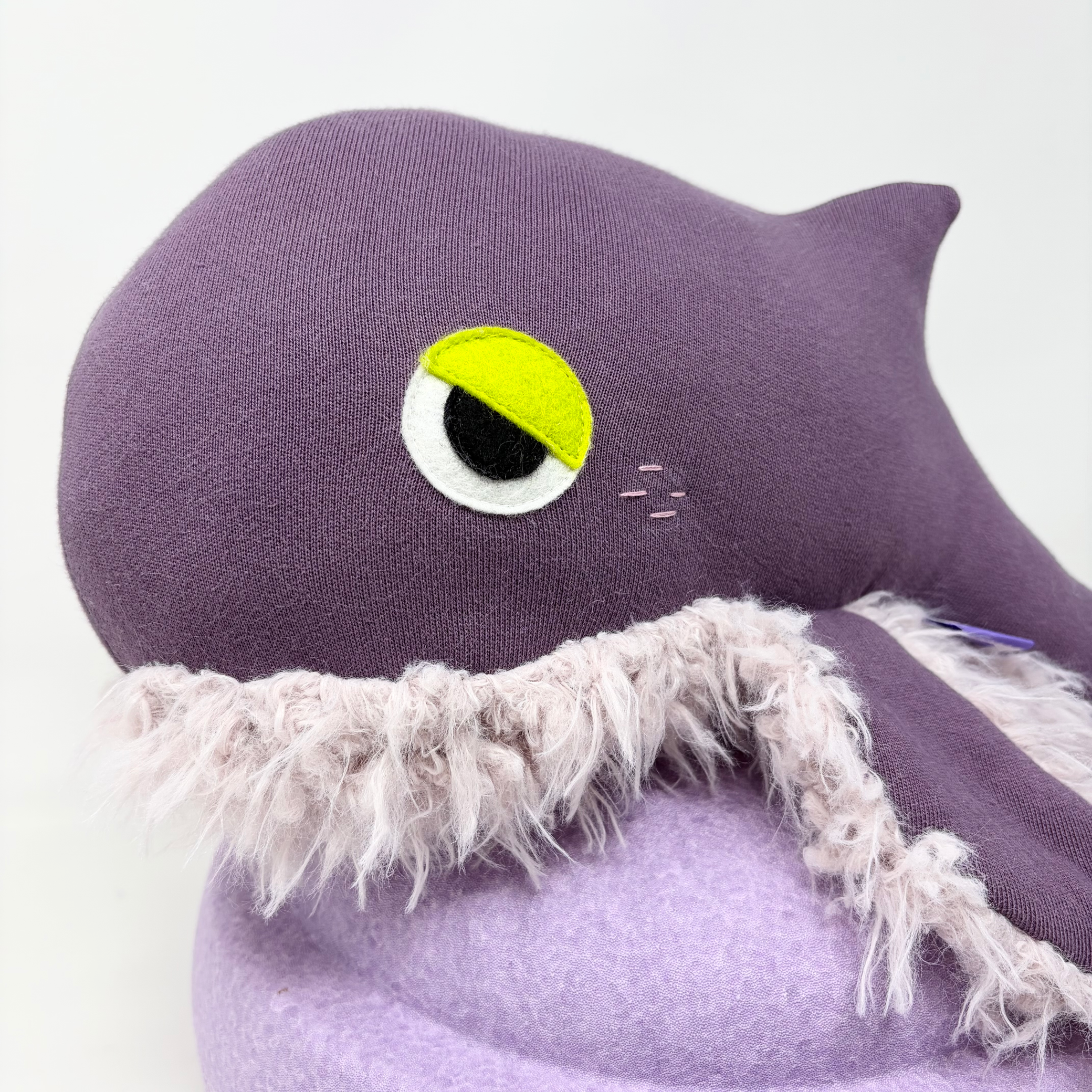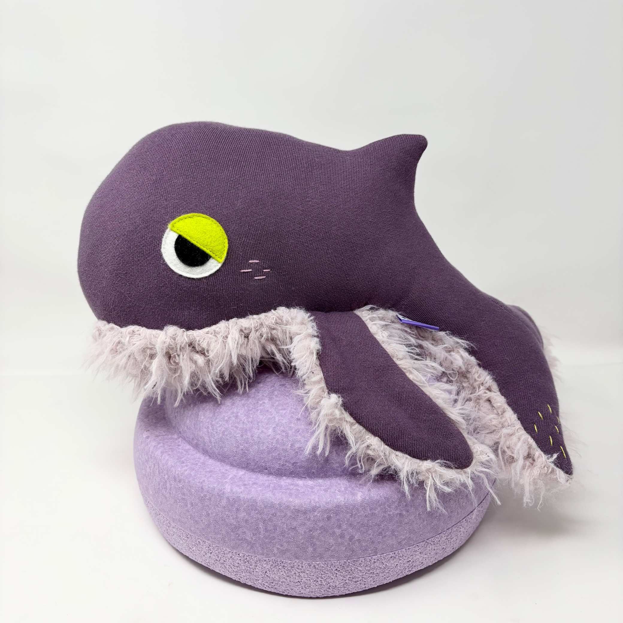 Wilma the whale is a cozy and dozy friend. She's looking for a new buddy to snuggle up with during her daily naps. Handmade in San Francisco from soft 100% cotton knit and minky fur, with wool felt and hand embroidered details. Each animal is stuffed with Poly-Fil and gently weighted with beads. Ages 3+