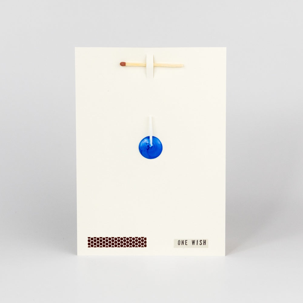 A wish card comes equipped with a match, a strike-pad and a candlewick - in short, everything you need to make a wish. This card was created with the idea of people worldwide pausing for a moment to reflect on what sort of positive change they really hope for. To give a wish card is to give a poetic experience. Produced on 356gsm FSC sustainability approved paper and made by hand in the UK.