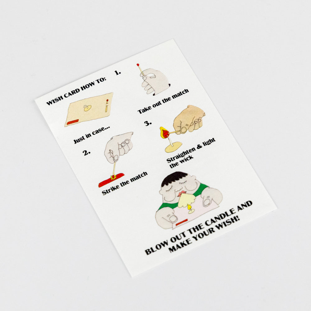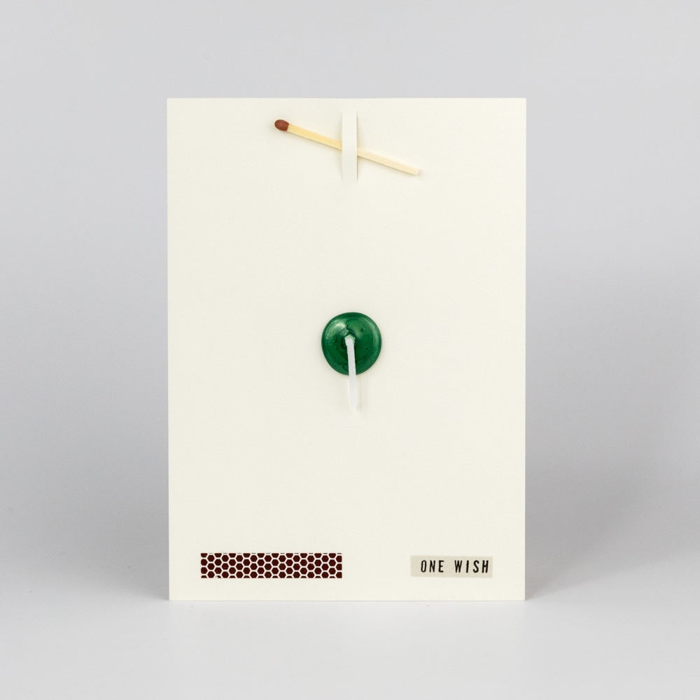 A wish card comes equipped with a match, a strike-pad and a candlewick - in short, everything you need to make a wish. This card was created with the idea of people worldwide pausing for a moment to reflect on what sort of positive change they really hope for. To give a wish card is to give a poetic experience. Produced on 356gsm FSC sustainability approved paper and made by hand in the UK.