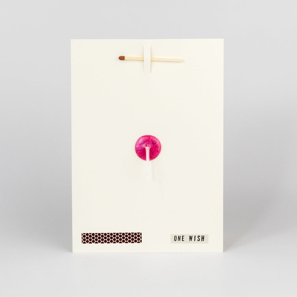 A wish card comes equipped with a match, a strike-pad and a candlewick - in short, everything you need to make a wish. This card was created with the idea of people worldwide pausing for a moment to reflect on what sort of positive change they really hope for. To give a wish card is to give a poetic experience. Produced on 356gsm FSC sustainability approved paper and made by hand in the UK.